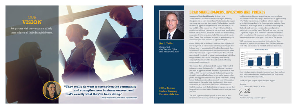 Designed the Annual Report for the State Bank of Cross Plains in 2016.